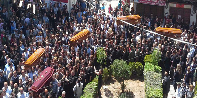2017-04-25 محافظة ريف دمشق تتسلم جثامين 5 شهداء مختطفين من معلولا قضوا على أيدى إرهابيي "جبهة النصرة" في بلدة عرسال اللبنانية 2017-04-25admin