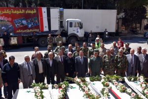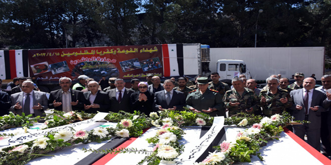 تشييع 51 شهيدا من أهالي كفريا والفوعة من المشفى العسكري في مدينة حلب