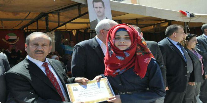 وأعرب نادر الطالب مدير المدرسة عن تقديره ودعمه للطالبات لتحقيق المزيد من التفوق والتميز في حين أكدت الطالبة دارين نبهان في كلمة القتها على أهمية التفوق ومواصلة مسيرة العلم والمعرفة والمساهمة في إعادة إعمار ما خربه الإرهاب.