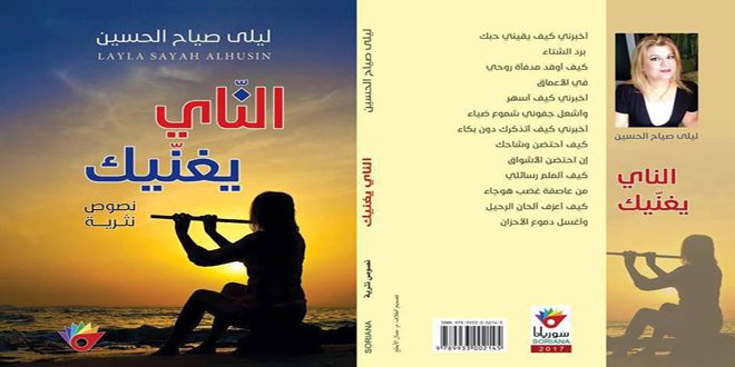 “الناي يغنيك” نصوص نثرية للكاتبة ليلى صياح الحسين تحتوي موضوعات كثيرة متنوعة بين الحب والوطن والمرأة مفعمة بالهم الإنساني وبما يعانيه الإنسان في أصقاع الأرض من ألم ووجع.