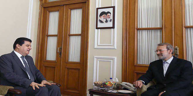 أكد الدكتور علي لاريجاني رئيس مجلس الشورى الإسلامي الإيراني خلال لقائه الدكتور عدنان محمود سفير سورية في طهران أن الأوضاع الميدانية في سورية تتقدم إلى الأمام في دحر الإرهابيين مشددا على تعزيز التنسيق بين سورية وايران وروسيا في محاربة الإرهاب والعمل على دفع المسار السياسي بما يحقق مصالح الشعب السوري ويحافظ على سيادة سورية ووحدة أراضيها واحترام إرادة السوريين في رسم مستقبل بلادهم دون أي تدخل خارجي.