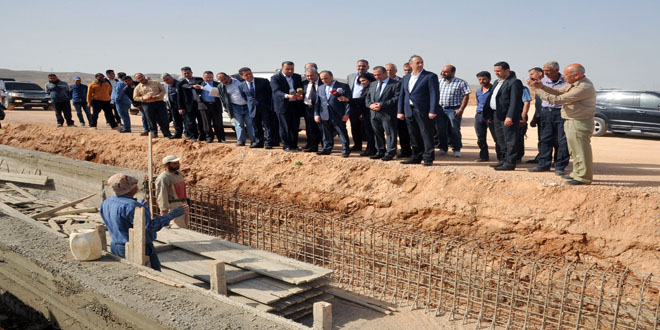 اطلع وفد حكومي برئاسة المهندس عماد خميس رئيس مجلس الوزراء على واقع العمل في مشروع ضاحية الفيحاء السكنية بمنطقة البجاع بريف دمشق واستمع من القائمين على المشروع إلى شرح مفصل حول خطوات العمل والبرنامج الزمني للإنجاز ومراحل إنجاز البنية التحتية الرئيسية.