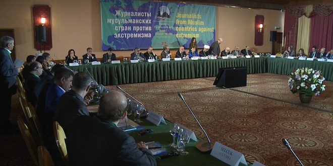 بدوره أكد فينيامين بوبوف رئيس مركز شراكة الحضارات في جامعة العلاقات الدولية التابعة لوزارة الخارجية الروسية رئيس المؤتمر أن الاولوية حاليا هي مكافحة الإرهاب الذي يشكل شرا عالميا ليس بالنسبة للشرق الأوسط وسورية فحسب بل للبشرية بأسرها وقال : ” إن الإرهاب هو تحد عالمي ونريد توحيد جهود جميع الاعلاميين والصحفيين ضده بالدرجة الأولى من العالم الإسلامي” .