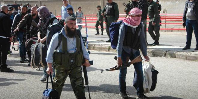 خروج دفعة جديدة من مسلحي حي الوعر بحمص وبعض عائلاتهم في إطار تنفيذ اتفاق المصالحة