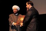 ونوه سماحة المفتي بما يقدمه الفن السوري من عرض للحقائق والواقع ولما يتعرض له السوريون لافتا إلى ضرورة صناعة فن يجمع الأبناء وإلى وجوب أن نترك لأولادنا “إرثا من الصمود يرقى إلى ما قدمه الجيش العربي السوري من تضحيات وأن نورث الأحفاد خريطة سورية كما صنعها الله للأجيال القادمة” داعيا في الوقت نفسه رجال الأعمال والفعاليات الاقتصادية المساهمة في مشروع إعادة إعمار سورية الى مساعدة المهجرين على العودة إلى وطنهم وبيوتهم.