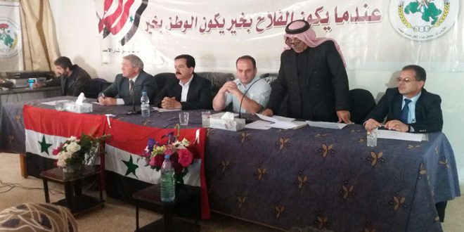 وقدم رئيس فرع اتحاد فلاحي القنيطرة علي المشيعيل شرحا عن عمل الاتحاد خلال العام الماضي والصعوبات التي تعترض العمل الزراعي داعيا الفلاحين إلى استثمار كل المساحات الزراعية بالمزروعات الشتوية والصيفية فيما أشار مدير فرع الأعلاف بالقنيطرة المهندس وحيد السعدية إلى أن أسعار المقنن العلفي مركزية من قبل اللجنة الاقتصادية في الوزارة وهي أسعار مدعومة لمربي الثروة الحيوانية.