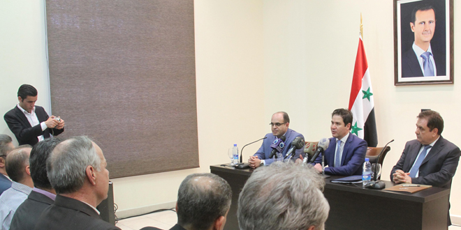 عقد وزيرا السياحة المهندس بشر اليازجي والاقتصاد والتجارة الخارجية الدكتور سامر خليل اجتماعا اليوم مع أصحاب مكاتب السياحة والسفر وشركات النقل والتسويق السياحي وأصحاب الفنادق في مبنى وزارة السياحة لمناقشة التحضيرات لفعاليات معرض دمشق الدولي.