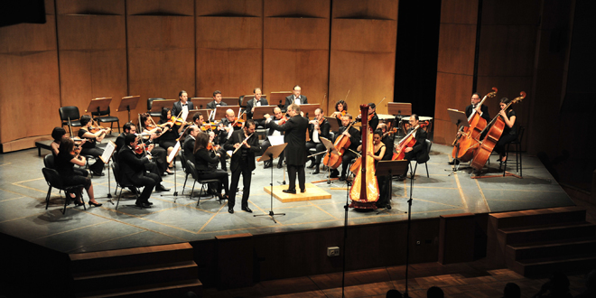 كانت آلة الفلوت والهارب نجمتي حفل الفرقة السيمفونية الوطنية السورية عندما عبر العازفان طارق حاتم ورهف شيخاني على أنغام أعمال لعبقريي الموسيقى موتسارت وبيتهوفن في الحفل الذي استضافته خشبة مسرح الدراما بدار الأسد للثقافة والفنون مساء اليوم.