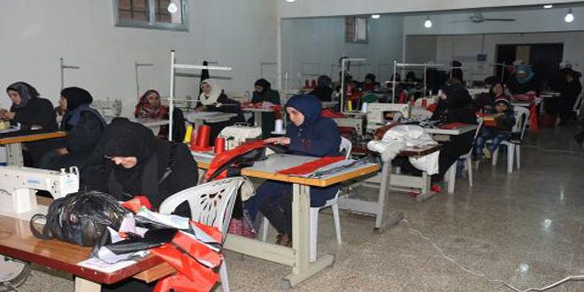 وأشار نجار إلى مشروع “رد الجميل ” الذي يهدف إلى تدريب زوجات وبنات الشهداء على أعمال الخياطة وصناعة المعجنات وقد بدا المشروع بإنتاج أعلام الجمهورية العربية السورية وهدف هذا المشروع غير ربحي وإنما إيجاد فرص عمل لذوي الشهداء والمرحلة الثانية من هذا المشروع سيتم فيه تجهيز مخبز للمعجنات وفق الإمكانات المتاحة ويتجاوز عدد العاملين فيه المئة عاملة.
