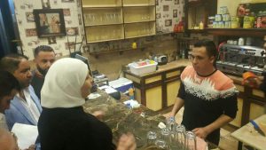 رافق الوزيرة بالجولة المهندس دمر العلي نائب رئيس المكتب التنفيذي لمحافظة حمص ومستشار الوزارة أيمن القحف ووسيم الصغير مدير الشؤون الاجتماعية والعمل وعدد من المعنيين بالمحافظة.