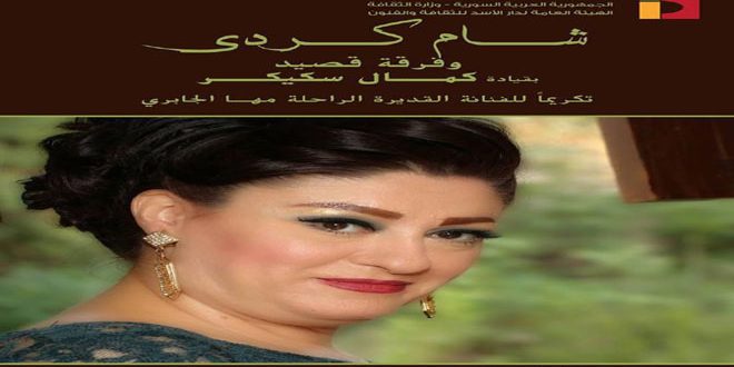 ضمن مشروعها لتكريم المطربات السوريات و العربيات الراحلات تكرم المطربة شام كردي الفنانة السورية الراحلة مها الجابري في أمسية غنائية بمرافقة فرقة قصيد الموسيقية بقيادة المايسترو كمال سكيكر و ذلك عند السادسة من مساء الاربعاء القادم في قاعة الدراما بدار الاسد للثقافة و الفنون بدمشق.