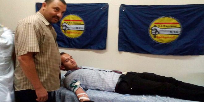 وفي حمص نفذ فرع اتحاد شبيبة الثورة حملة تبرع بالدم دعما لجرحى الجيش العربي السوري ووفاء لتضحيات أبطاله في الدفاع عن الوطن والذود عن كرامته وعزته.