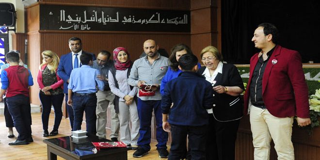 لأنهم “أنبل من في الدنيا وأكرم بني البشر” وبمناسبة عيد الشهداء كرم “تجمع محبي القائد الخالد حافظ الأسد” المتفوقين في مدارس أبناء وبنات الشهداء إكراما وإجلالا لأرواح آبائهم الذين ضحوا بدمائهم فداء لسورية خلال حفل اقيم في الهيئة العامة لمدارس أبناء وبنات الشهداء.