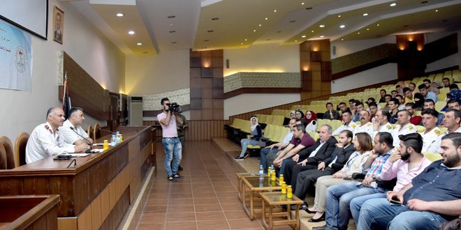 بدوره تحدث العميد زهير الشبلي رئيس فرع المرور بحلب عن أهمية المرفق المروري للمجتمع ودوره في الحفاظ على أرواح المواطنين وممتلكاتهم مؤكدا ضرورة الالتزام بقوانين السير وانظمة المرور التي تهدف إلى تسهيل وضبط حركة المواطنين والمركبات الالية وتخفيف الازدحام وتحقيق السلامة العامة على الطرقات.