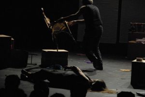 من مسرحية “تصحيح ألوان” على خشبة القباني