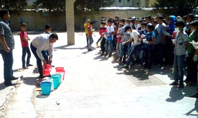 حملة نظافة لمدرسة المحطة الأولى بمدينة درعا