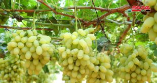 يشار إلى أن الانتاج المتوقع من محصول العنب في محافظة حمص للموسم الزراعي الحالي تجاوز 100 ألف طن.