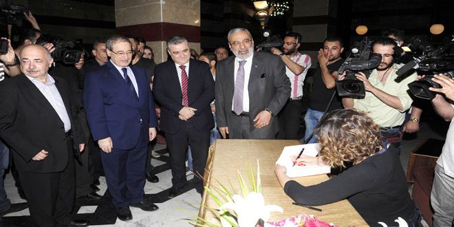 حضر حفل التوقيع نائب رئيس الجبهة الوطنية التقدمية عمران الزعبي ووزير الإعلام المهندس محمد رامز ترجمان ونائب وزير الخارجية والمغتربين الدكتور فيصل المقداد ورؤساء اتحاد الكتاب العرب والصحفيين والناشرين السوريين ومديرو عدد من المؤسسات الإعلامية وعدد من الصحفيين.