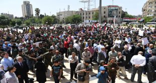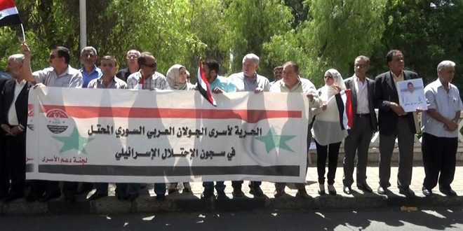 تضامنا مع الاسرى السوريين والفلسطينيين المعتقلين في سجون الاحتلال الإسرائيلي نظمت لجنة دعم الأسرى المحررين والمعتقلين السوريين في سجون الاحتلال اعتصاما جماهيريا اليوم أمام مقر اللجنة الدولية للصليب الأحمر بدمشق.