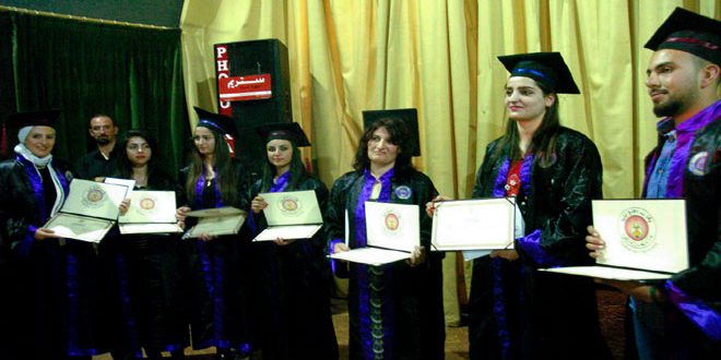احتفل اليوم في السويداء بتخريج دفعة جديدة من طلاب كليتي الآداب والتربية الثانية البالغ عددهم 264 طالبا وطالبة وذلك خلال الفعالية التي أقامها فرع جامعة دمشق بالتعاون مع الكلية وفرع الاتحاد الوطني لطلبة سورية.