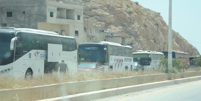 وخرج الاثنين الماضي عدد من الحافلات تقل الدفعة الأولى من عشرات المسلحين وبعض أفراد عائلاتهم من منطقة برزة باتجاه الريف الشمالي.