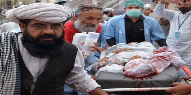 قتل 25 شخصا وأصيب أكثر من 30 آخرين بجروح بينهم نائب رئيس مجلس الشيوخ الباكستاني جراء تفجير بعبوة ناسفة في إقليم بالوشستان جنوب غرب باكستان اليوم.