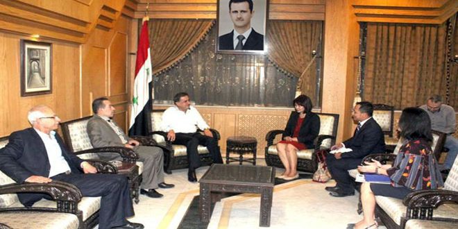 بحث محافظ حلب حسين دياب مع القنصل محي سومنار رئيسة القسم الاقتصادي في السفارة الاندونيسية بدمشق والوفد المرافق اليوم واقع العلاقات الثنائية المشتركة وسبل تعزيزها وتطويرها لما فيه مصلحة البلدين والشعبين الصديقين.