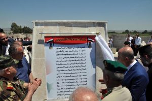 قام وزير التجارة الداخلية وحماية المستهلك الدكتور عبد الله الغربي ومحافظ حمص طلال البرازي اليوم بإزاحة الستار عن النصب التذكاري لروضة شهداء قرية عناز بريف حمص.