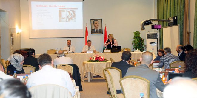 واستعرض المشاركون في الورشة الياتهم المتبعة لتطوير الكتاب المدرسي في ضوء الإطار العام للمنهاج السوري الجديد ومفردات المناهج المطروحة التي تمت دراستها مؤخرا.