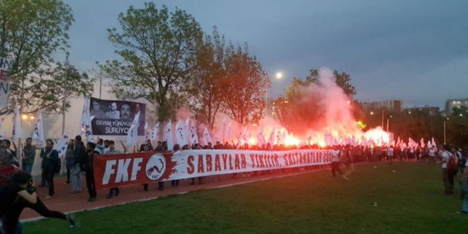 وأكد المشاركون في المظاهرة أهمية النضال والتضحية من أجل الحفاظ على ديمقراطية تركيا ونظامها العلماني معتبرين أن أردوغان يسعى للقضاء على هذا النظام وإقامة نظام رجعي متخلف كما هو الحال في ممالك ومشيخات الخليج.