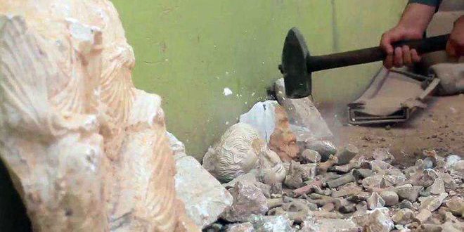 وتعامل تنظيم “داعش” وبقية التنظيمات الإرهابية مع الآثار بطريقتين الأولى عبر تجارة وتهريب القطع الأثرية التاريخية من أجل تأمين مصادر تمويل إضافية والثانية تدمير الآثار التي لم يستطيعوا بيعها أو تهريبها إلى خارج سورية.