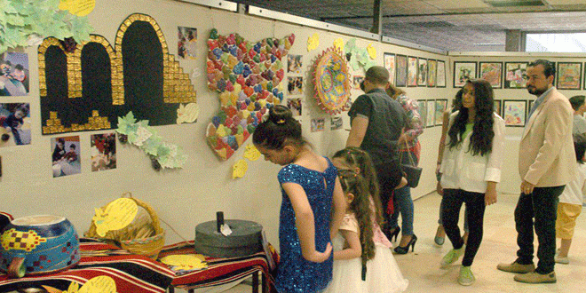 يتضمن المعرض الفني الذي يستضيفه المركز الثقافي العربي في مدينة السويداء نحو 300 عمل فني تجسد في موضوعاتها حب الوطن والأرض وجمال الطبيعة.