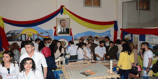 الدكتوروليد ابراهيم مدير مديرية المعاهد التقانية بجامعة البعث اشار الى أن هذا المعرض هو استكمال لسلسلة المعارض التي أقامها المعهد سابقا وهدفه تجديد الحياة الجامعية وتكريس النتاج العلمي للطلاب الذين أنجزوا تصاميمهم ضمن إمكانات محدودة “الأمر الذي لم يحد من جودتها سواء في اعمال طلاب الرسم والتصميم الهندسي او في أعمال طلاب الانشاءات العامة او المساحة”.