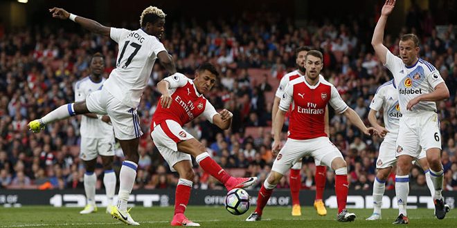 تغلب أرسنال على ساندرلاند بهدفين دون مقابل ليحافظ على آماله في إنهاء الموسم ضمن الأربعة الأوائل بالدوري الانكليزي الممتاز بكرة القدم.