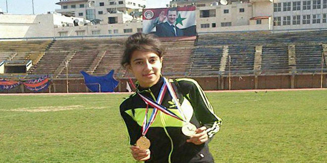 نشرة سانا الرياضية التقت اللاعبة يمنى وقاف بطلة الجمهورية للشبلات والناشئات في سباقات 100 متر و400 متر حواجز والوثب العالي حيث تحدثت عن مشوارها الرياضي الغني بالبطولات رغم صغر سنها لافتة إلى أنها بدأت خطواتها الأولى في الرياضة عبر الجمباز في عمر الخمس سنوات على يد مدربها فادي ضومط واستطاعت أن تحقق مع فريقها المركز الخامس على مستوى الجمهورية عام 2009 لكن سرعان ما اتجهت نحو ألعاب القوى بجهد وتدريب عال على يد كل من المدربين ابراهيم بوظة وابراهيم ابراهيم وفدوى بوظة الذين استطاعوا أن يوظفوا مرونة ورشاقة جسدها في رياضة ألعاب القوى منذ أواخر 2014 وحرصوا على تدريبها بمهارة وإتقان.