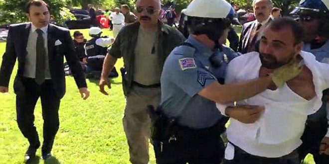 وكان حراس اردوغان اعتدوا على متظاهرين أمام مقر إقامة السفير التركي ما أسفر عن إصابة 10 أشخاص بجروح.