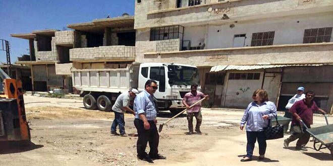 وأوضحت عضو المكتب التنفيذي في المحافظة عن قطاع البلديات المهندسة حمدة العرقاوي في تصريح لمراسل سانا أن المحافظة أنهت أعمال الإزالة والتنظيف في شوارع تجمع البويضة للنازحين ليصار الى البدء بإعادة تأهيل البنى التحتية لشبكات مياه الشرب والصرف الصحي تمهيدا لعودة الأهالي إلى منازلهم.