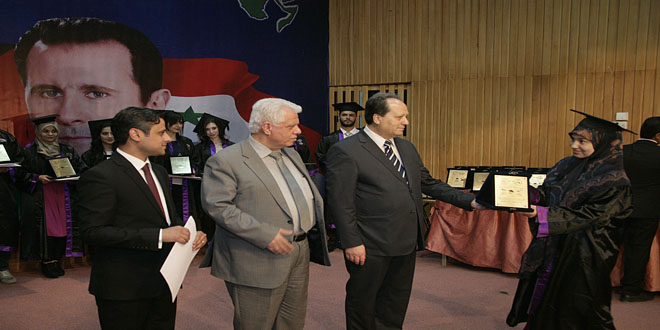 احتفلت جامعة دمشق اليوم بتخريج دفعة من الطلبة العرب الدارسين فيها باسم “دفعة الوفاء لسورية” وذلك على مدرج الباسل في كلية الهندسة المدنية.