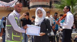وفي ختام الفعاليات الفنية تم تكريم عدد من المتدربين المتميزين الذين خضعوا لدورات تدريب مهني في مركز الريادة للتدريب والتأهيل بمدينة الحسكة.