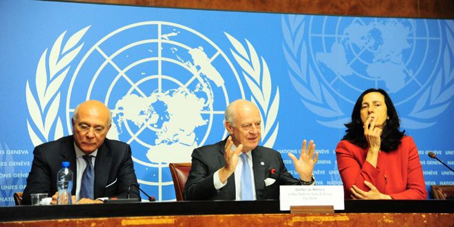 وقال دي ميستورا خلال مؤتمر صحفي في جنيف اليوم “إننا لا نخطط أو نهدف عبر هذه الاجتماعات الى وضع دستور جديد.. نحن لن نفعل ذلك خلال تلك الاجتماعات أو لا نهدف الى وضع أي قانون أساسي لسورية فهذا شأن الشعب السوري ولكننا ننوي إرساء الدعائم لكي يقوم الشعب السوري بهذا الأمر في سياق الحل السياسي وفقا للقرار الدولي 2254”.