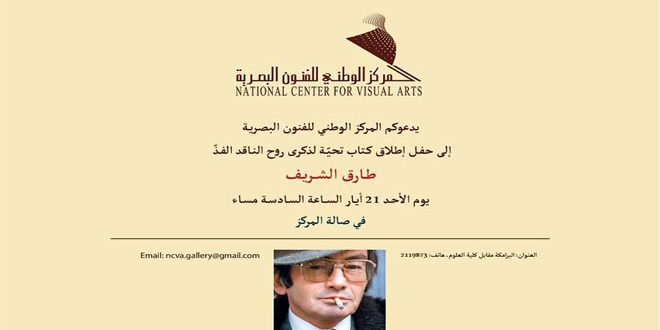 يطلق المركز الوطني للفنون البصرية عند الساعة السادسة من مساء يوم غد كتابا حول الناقد الفني التشكيلي الراحل “طارق الشريف” باكورة إصدارات المركز في مجال التوثيق للحركة التشكيلية السورية المعاصرة.