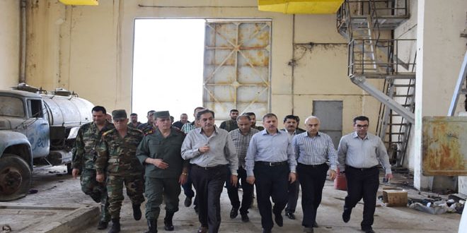 وشملت الجولة زيارة مدن وبلدات وقرى دير حافر ومسكنة والبابيري والحبوبة وقصر هدلة والمعمورة ومحطة ضخ البابيري والاطلاع على حجم الدمار الكبير الذي خلفه الإرهاب في هذه المناطق ومتابعة عمل المديريات الخدمية والورش الفنية العاملة في إطار إعادة الخدمات الأساسية وتوفيرها للأهالي العائدين لقراهم.