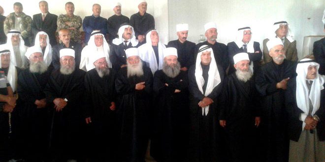 وأشار المشاركون في بيان لهم إلى أن لقاءهم يأتي ايمانا منهم بوحدة سورية وواجب الدفاع عن ترابها وحماية علمها ومؤسساتها ومحاربة الإرهاب التكفيري و”انطلاقا من التاريخ النضالي المجيد للاباء والاجداد واستلهاما لبطولاتهم في تصديهم للغزاة واستحضارا لماثر انتصاراتهم واقتداء بشعار الثورة السورية الكبرى التي قادها المجاهد سلطان باشا الاطرش.. الدين لله والوطن للجميع”.