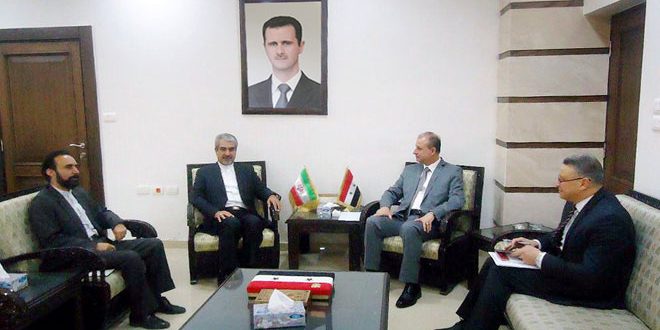 بحث وزير النفط والثروة المعدنية المهندس علي غانم وسفير إيران بدمشق جواد تركابادي اليوم آفاق التعاون المشترك بين البلدين في مجالات النفط والغاز والثروة المعدنية.