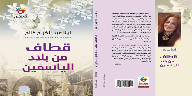 قطاف من بلاد الياسمين مجموعة قصصية باكورة نتاجات لينا عبد الكريم غانم تتضمن هواجس امرأة بما هو خاص أحياناً ويمس أحاسيسها ومشاعرها وبما تأثرت فيه مما يدور حولها في البيئة والمجتمع المحيط بها.