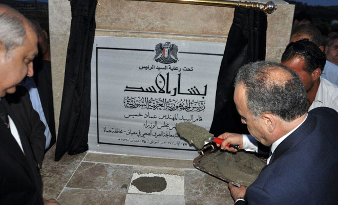 ووضع رئيس مجلس الوزراء حجر الأساس لمشروع محطة معالجة مياه الصرف الصحي لمدينة مصياف وأربع قرى مجاورة بكلفة نحو 5ر2 مليار ليرة سورية.