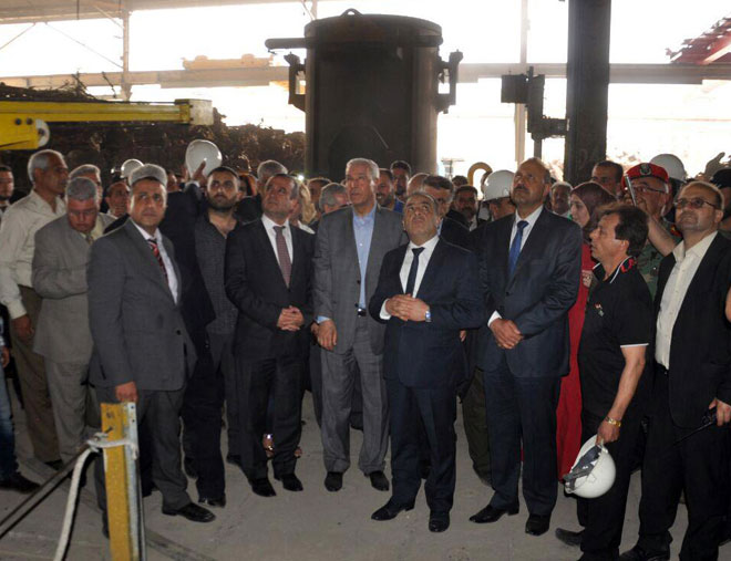 وفي الشركة العامة للمنتجات الحديدية والفولاذية زار رئيس مجلس الوزراء معمل صهر الخردة وانتاج القضبان الحديدية عقب تطوير خطوطه الانتاجية التي تم تنفيذها بالتعاون بين كفاءات وطنية سورية وشركة أبولو الهندية حيث تضمن مشروع تطوير المعمل رفع الطاقة الانتاجية لمعمل الصهر من87 ألف طن سابقا إلى 288 الف طن.