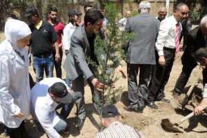 من جانبه بين الدكتور محمد حسان الكردي رئيس جامعة دمشق أن الحملة تأتي في إطار نشاطات الجامعة بمناسبة عيد الشهداء حيث تضمنت زراعة عدد من الغراس بأسماء شهداء كلية الزراعة تكريما لهم مؤكدا حرص الجامعة على تقديم كل الدعم اللازم لأسر الشهداء وتسهيل أمورهم إضافة إلى توجيه الكليات لتخصيص نشاطاتها وتسخيرها خدمة لهذا الغرض.