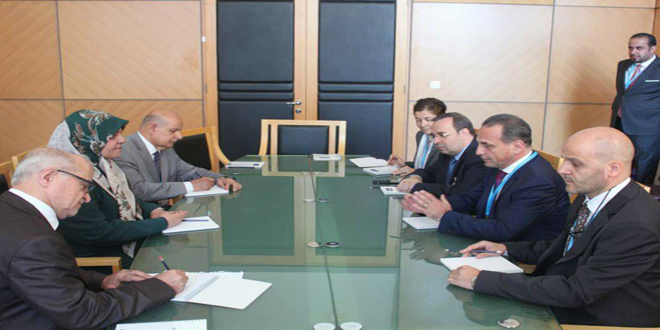 بحث وزير الصحة الدكتور نزار يازجي في اجتماعين منفصلين مع نظيريه البيلاروسي فاليري مالاشكو والعراقي الدكتورة عديلة حمود حسين إمكانيات تعزيز التعاون الصحي والدوائي المشترك بما ينعكس إيجابا على الواقع الصحي في سورية وذلك على هامش أعمال الدورة السبعين لجمعية الصحة العالمية المنعقدة في جنيف.