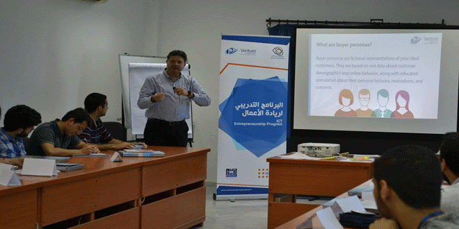 قرابة أربعين مشروعا متميزا تم اختيارهم من 121 مشروعا تقدم بها أصحابها من مختلف المحافظات السورية للاستفادة من “البرنامج التدريبي لريادة الأعمال” الذي تقيمه “حاضنة تقانة المعلومات والاتصالات” في الجمعية العلمية السورية للمعلوماتية بالتعاون مع صندوق الامم المتحدة للسكان لتعزيز قدرات الشباب في مجال ريادة الأعمال وذلك من خلال التركيز على عدة محاور كالتسويق والدراسة المالية ومهارات عرض وتقديم المشروع.